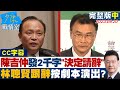 12.19Tue 【CC上集】美英籲尊重新聞自由立即放人 黎智英案港開庭連審80天? 12.18Mon 【CC上集】趙少康:你拆違法違建、我辭中廣董 直球對決賴清德? #陳文茜#郭正亮