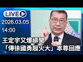 03.06Fri 《新庶民大頭家》政院、藍版軍費付委 川普中東亂戰…給錢拿得到貨?#謝寒冰 #李勝 03.05Thu 《新庶民大頭家》台人困卡達求救遭回「在飯店等」? 戰地求生自立自強?#陳揮文 #